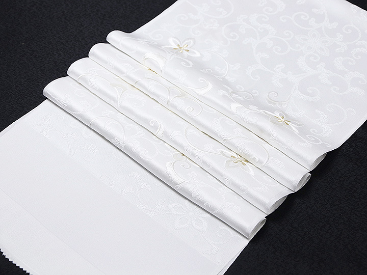 和装小物 > 黒留袖(礼装用) > 礼装用帯揚げ平モノ > 黒留袖(礼装用)帯揚げ 唐織刺繍<花唐草(白/金)>
