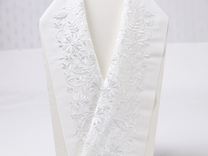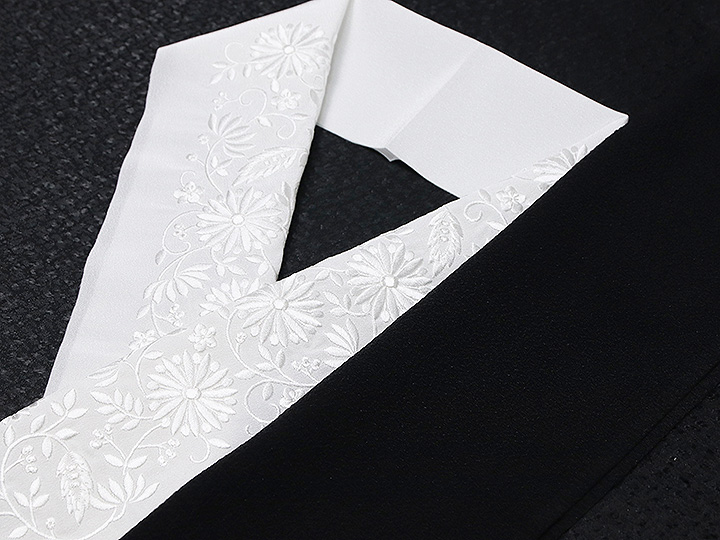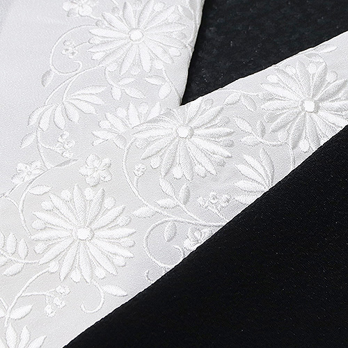 黒留袖(礼装用)半襟 【化繊素材】 柄: 白/白(02) 素材 : 生地) ポリエステル100%、刺繍糸) レーヨン糸100% 日本製