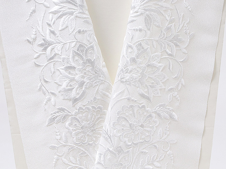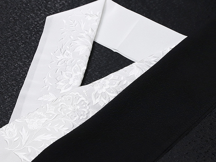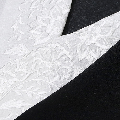 黒留袖(礼装用)半襟 【化繊素材】 柄: 白/白(03) 素材 : 生地) ポリエステル100%、刺繍糸) レーヨン糸100% 日本製