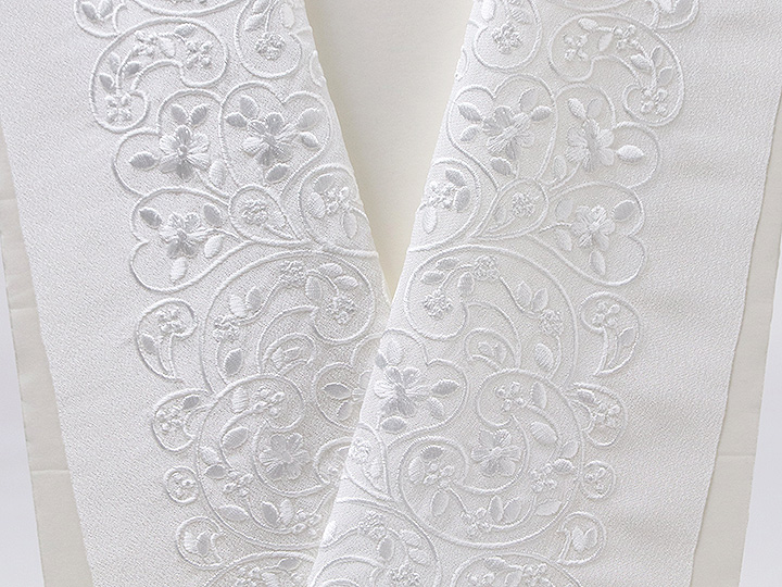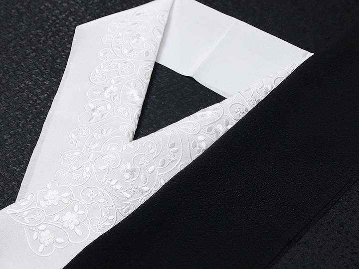黒留袖(礼装用)半襟 【化繊素材】 柄: 白/白(04) 素材 : 生地) ポリエステル100%、刺繍糸) レーヨン糸100% 日本製