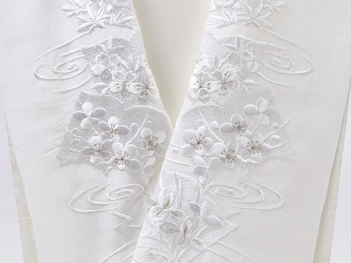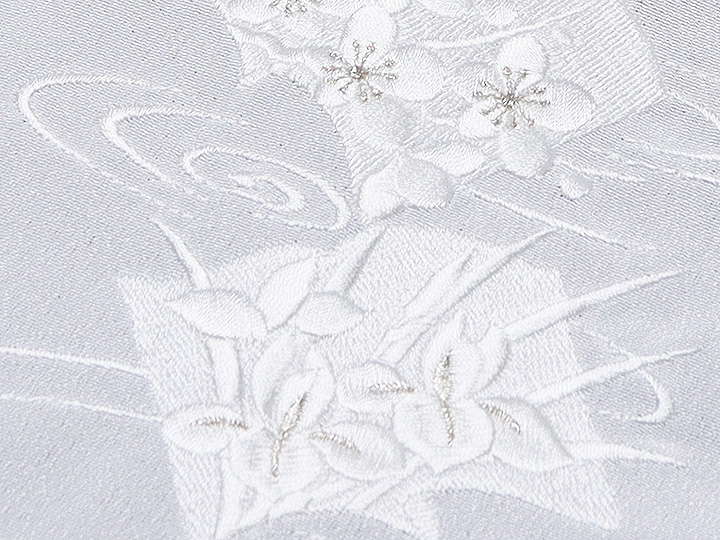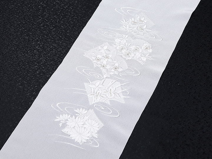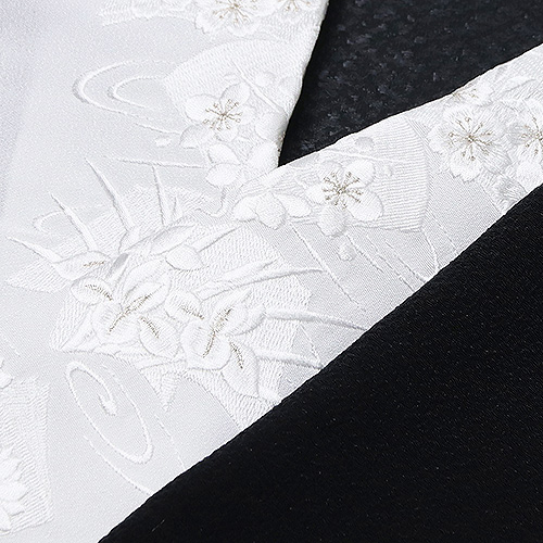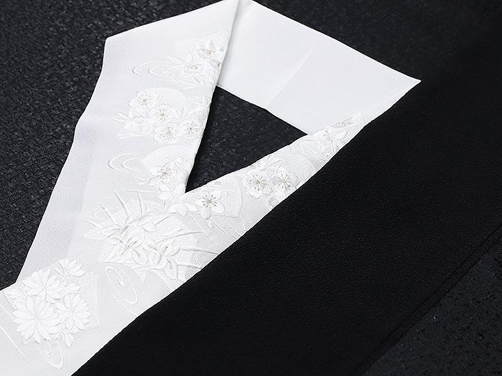 黒留袖(礼装用)半襟 【化繊素材】 柄: 白/白(06) 素材 : 生地) ポリエステル100%、刺繍糸) レーヨン糸100% 日本製