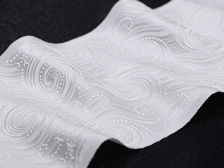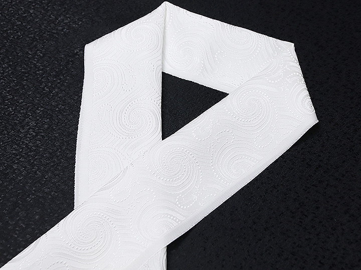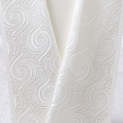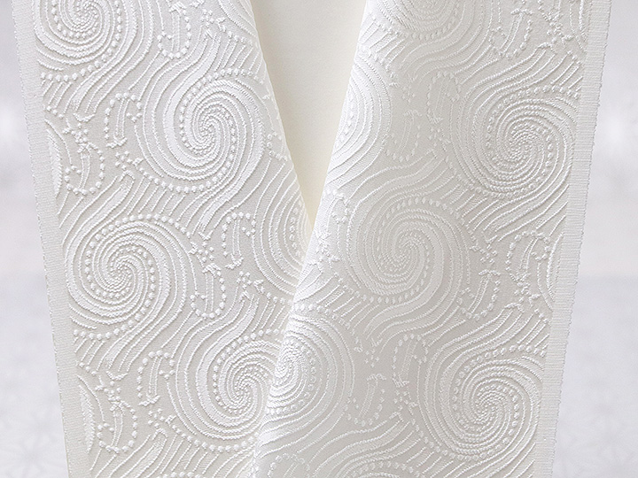 和装小物 > 半襟 > 白半襟・柄 (化繊・正絹) > 白半襟 柄 正絹 風通三重織 渦巻(うずまき)