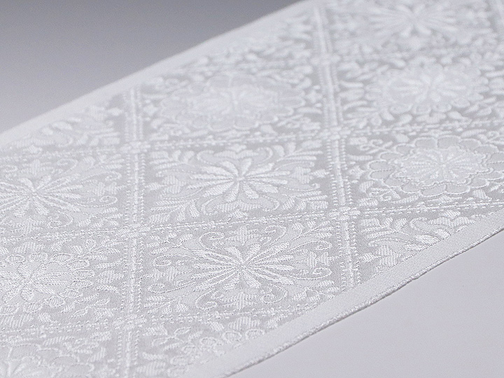和装小物 > 半襟 > 白半襟・柄 (化繊・正絹) > 白半襟 柄 正絹 風通三重織 華紋入菱格子(はなもんいりひしこうし)