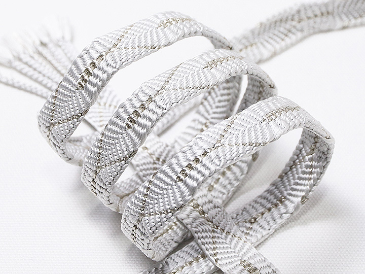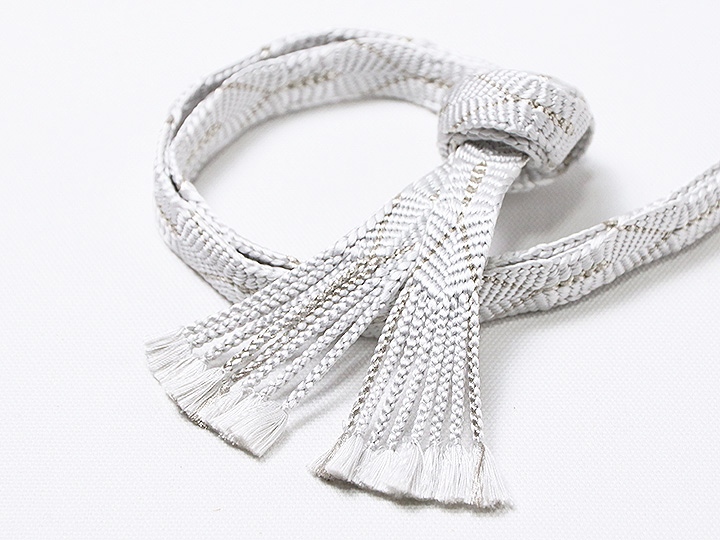 帯締め 「唐組Y字たこ房」 カラー: 月白/銀(02) 素材: 絹100%(一部金属糸使用) 糸染め:日本 組加工:中国