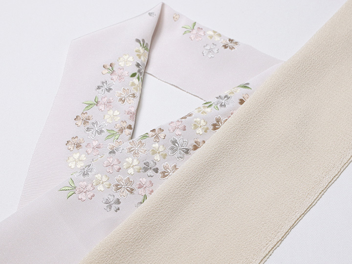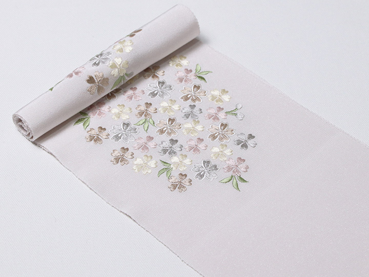 和装小物 > 半襟 > 刺繍半襟 桜づくし > 刺繍半襟 桜づくし 灰桜地(04)