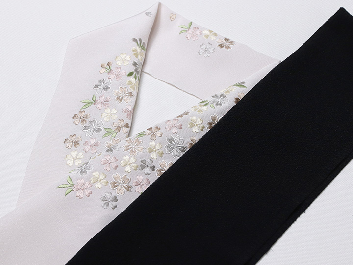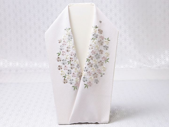 刺繍半襟 「桜づくし」 カラー: 灰桜地(04) 素材 : 生地) 絹100%、 刺繍糸) 絹100% 日本製 <ERISHO ORIGINAL>