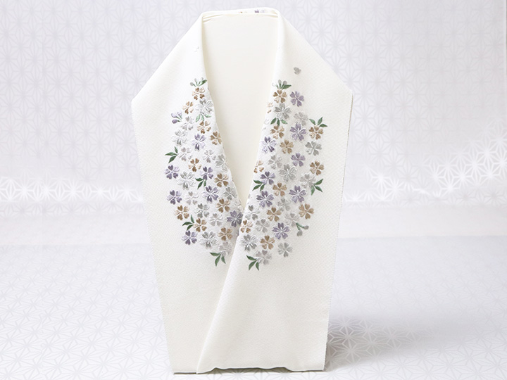 刺繍半襟 「桜づくし」 カラー: オフホワイト地(05) 素材 : 生地) 絹100%、 刺繍糸) 絹100% 日本製 <ERISHO ORIGINAL>