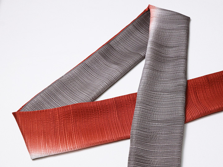 帯揚げ 「二色斜め染め分け」 カラー: 紅海老茶/鈍色(01) 素材: 絹100% 日本製 <ERISHO ORIGINAL>