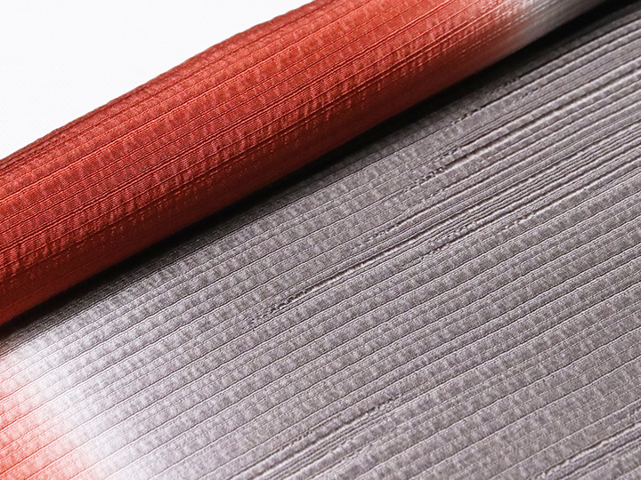 和装小物 > 帯揚げ > 帯揚げ 二色斜め染め分け > 帯揚げ 二色斜め染め分け 紅海老茶(べにえびちゃ)/鈍色(にびいろ)(01)