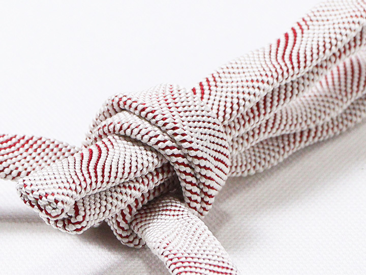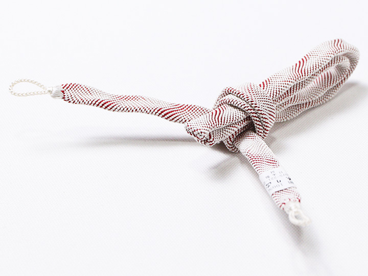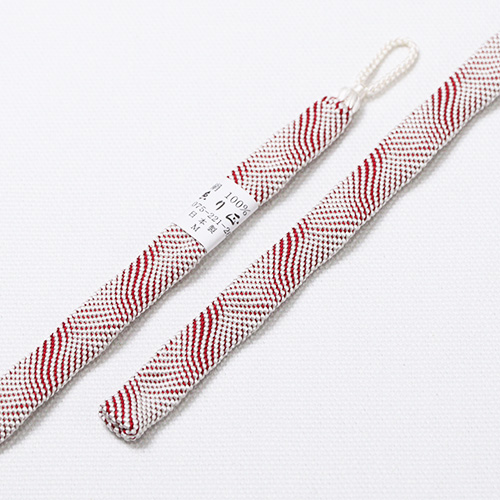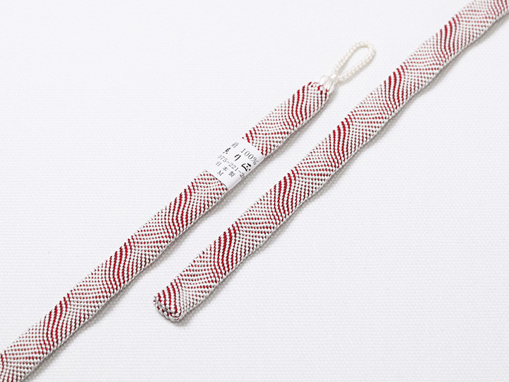 紳士羽織紐 「七宝ウェーブ 押込房」 カラー: 白/深赤(01) 素材: 絹100% 日本製 <ERISHO ORIGINAL>