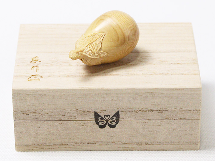 側面に現れた、黄楊の美しい木目も、ひとつの景色として作品に収まっています。