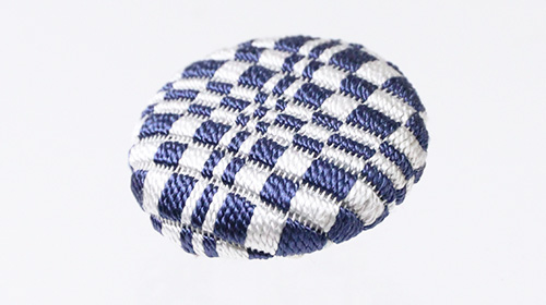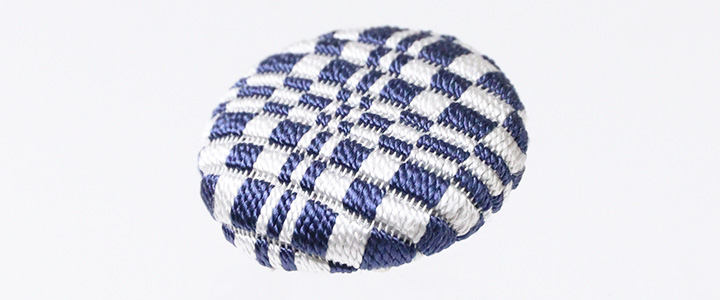 帯留め 絽刺し 「変わり市松(紺白)」 素材:絹100%