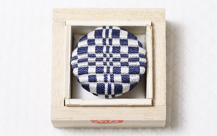 和装小物 > 帯留め > 帯留め 絽刺し > 帯留め 絽刺し 変わり市松(紺白)