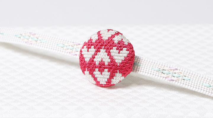 帯留め 絽刺し 「ハート(猪目)」 素材:絹100%