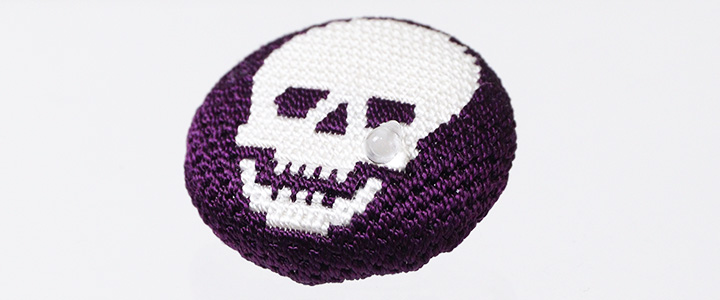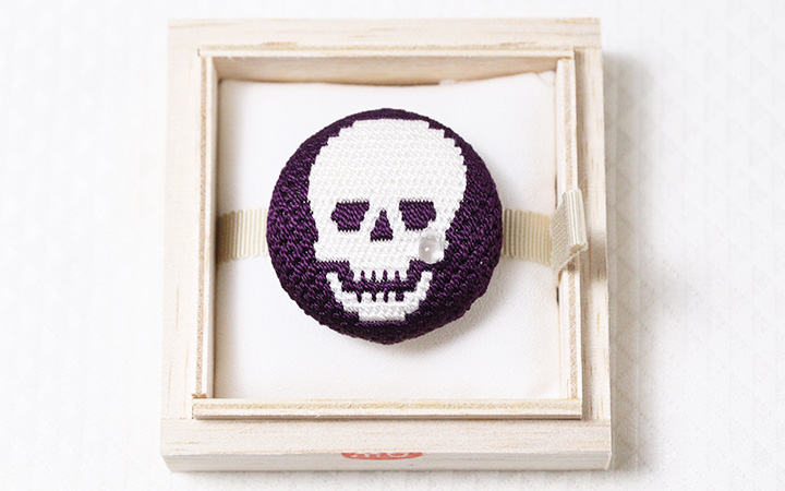和装小物 > 帯留め > 帯留め 絽刺し > 帯留め 絽刺し スカル髑髏(紫)