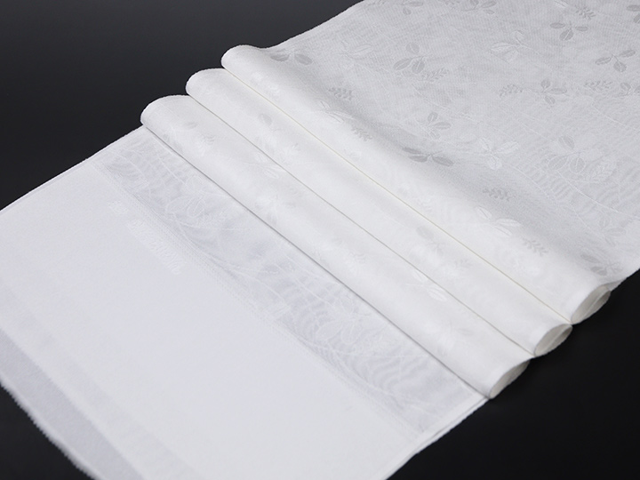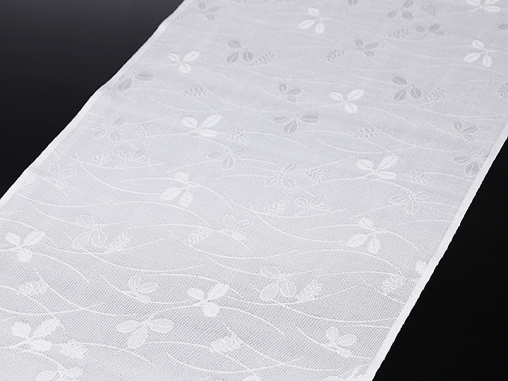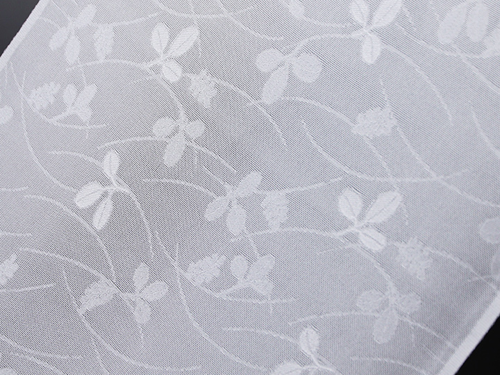 珍しい「紋紗」織りの夏の礼装用帯揚げです。 いざ探してみると、案外見つからないシンプルで潔い白地の帯揚げ。 細かな格子状に織り上げられた紋紗地に、萩の花が映える涼しげな一品です。