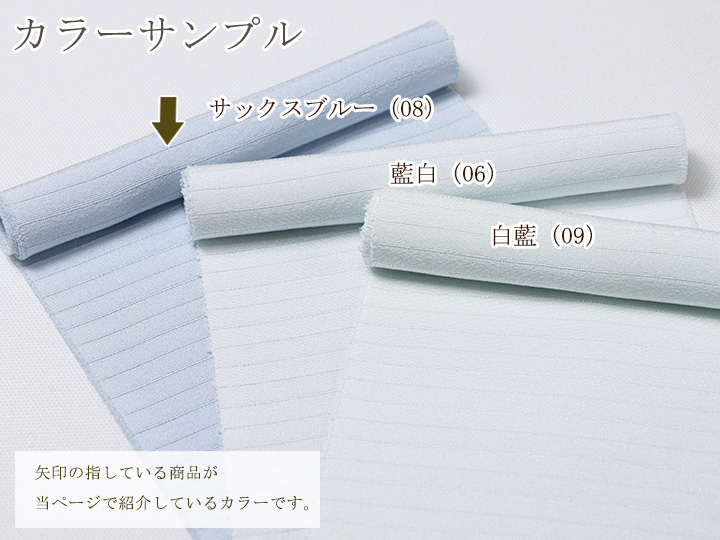 和装小物 > 半襟 > 半襟 絽塩瀬無地 > 半襟 絽塩瀬無地 サックスブルー(08) 和装小物 > 紳士用 > 紳士用半襟 > 半襟 絽塩瀬無地 > 半襟 絽塩瀬無地 サックスブルー(08)
